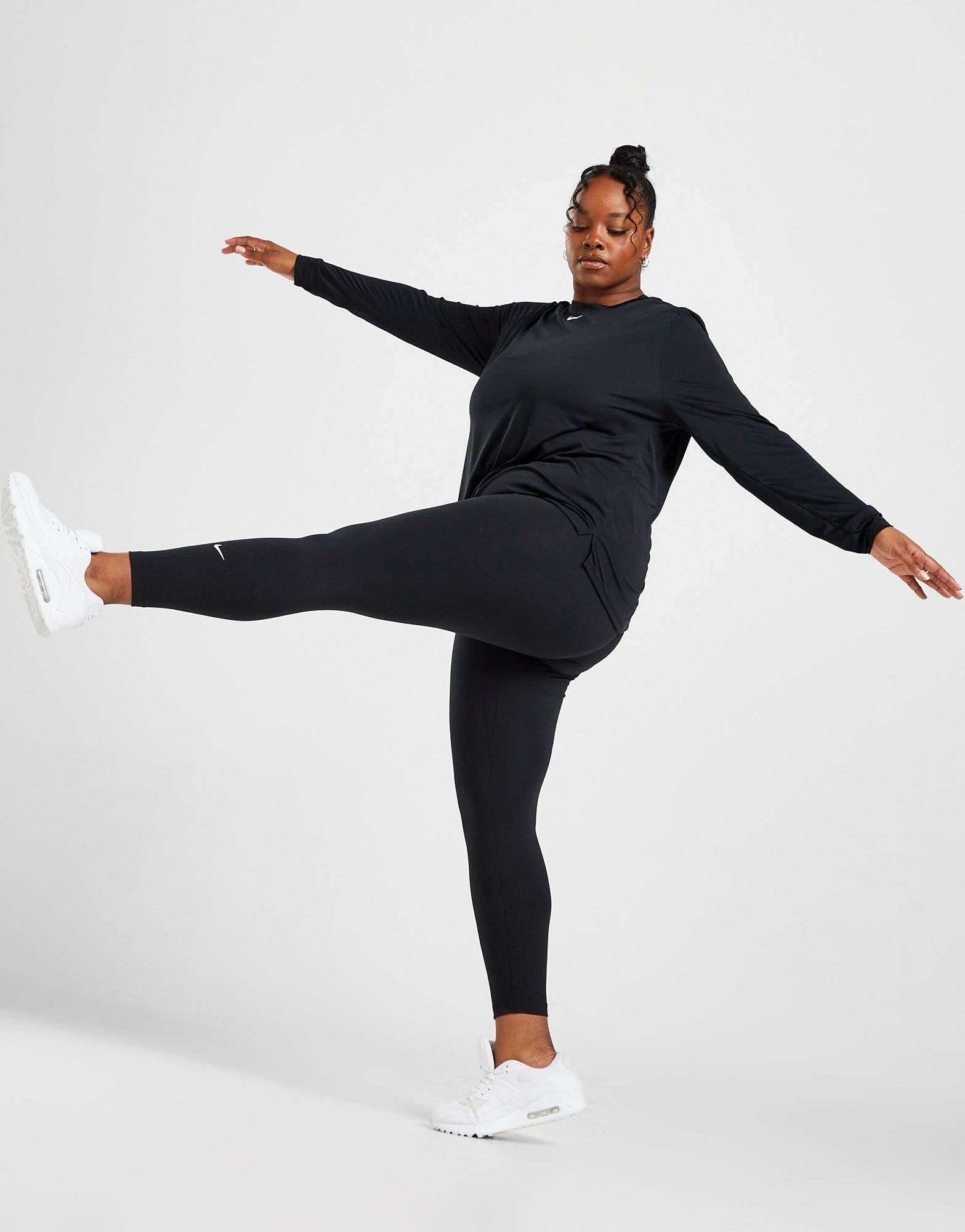 Built to do it all, these women’s Training One Plus Size Tights 2.0 from Nike have everything from sofa days to workouts covered. In a Black colourway, these tight-fit leggings are made from a thick , squat-proof knit fabric with Nike’s Dri-FIT tech to wick away sweat during training. They feature an elasticated mid-rise waistband for custom comfort as well as two concealed pockets for small essentials. Finished with the iconic Swoosh logo to the leg. Machine washable. | Our model is 5’9″ and wears a size 1X.