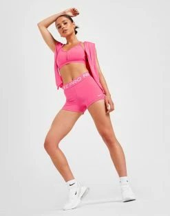 Exclusive. Elevate your workouts with these women’s Training Pro 3″ Shorts from Nike. In a Pinksicle colourway, these body-hugging shorts are built with at least 50% recycled polyester fibres, while sweat-wicking tech keeps you cool and comfy. They feature a wide, mid-rise elasticated waistband for a stretchy, supportive feel. Signed off with repeated Nike Pro branding to the band and a signature Swoosh to the left leg. Machine washable. | Our model is 5’6″ and wears a size small.