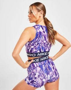 Rep a bold look from the gym to the roads in this women’s Training Pro All Over Print Tank Top from Nike. In a Lapis and Obsidian print, this vibrant vest is made from smooth, stretchy poly fabric, using sweat-wicking Dri-FIT tech for a cool and dry feel. With a round neckline, this tight-fit top has a thick, elasticated hem at the waist for a secure wear. Finished up with repeated Nike Pro branding to the band and a signature Swoosh to the chest. Machine washable. | Our model is 5’7″ and wears a size small.