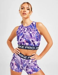 Rep a bold look from the gym to the roads in this women’s Training Pro All Over Print Tank Top from Nike. In a Lapis and Obsidian print, this vibrant vest is made from smooth, stretchy poly fabric, using sweat-wicking Dri-FIT tech for a cool and dry feel. With a round neckline, this tight-fit top has a thick, elasticated hem at the waist for a secure wear. Finished up with repeated Nike Pro branding to the band and a signature Swoosh to the chest. Machine washable. | Our model is 5’7″ and wears a size small.