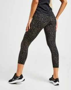 Own your workout with these women’s Training Pro All Over Print Tights from Nike. In a Black colourway with animal print, these body-hugging tights are made from soft, stretchy polyester fabric, with at aleast 75% recycled poly fibres, for flexible comfort as you train. They feature an elasticated, high-rise waistband for a relaxed fit, with Dri-FIT sweat-wicking tech to keep you dry and fresh. They come with a cropped leg and are finished up with Nike Pro branding to the waist and a Swoosh to the leg. Machine washable | Our model is 5’8″ and wears a size small.