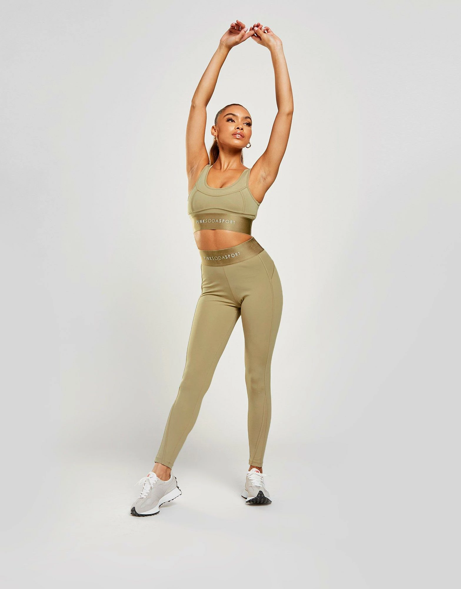 Level up your gym ‘drobe with these women’s Contour Tights from Pink Soda Sport. In a Sage Green colourway, these tights are made from soft, stretchy poly-blend fabric with sweat-wicking tech to keep you dry and in the zone at all times. They feature a high-rise, elasticated waistband that keeps your core supported whilst providing a relaxed fit. Signed off with trademark Pink Soda Sport branding. Machine washable | Our model sis 5’7″ and wears a size 8.