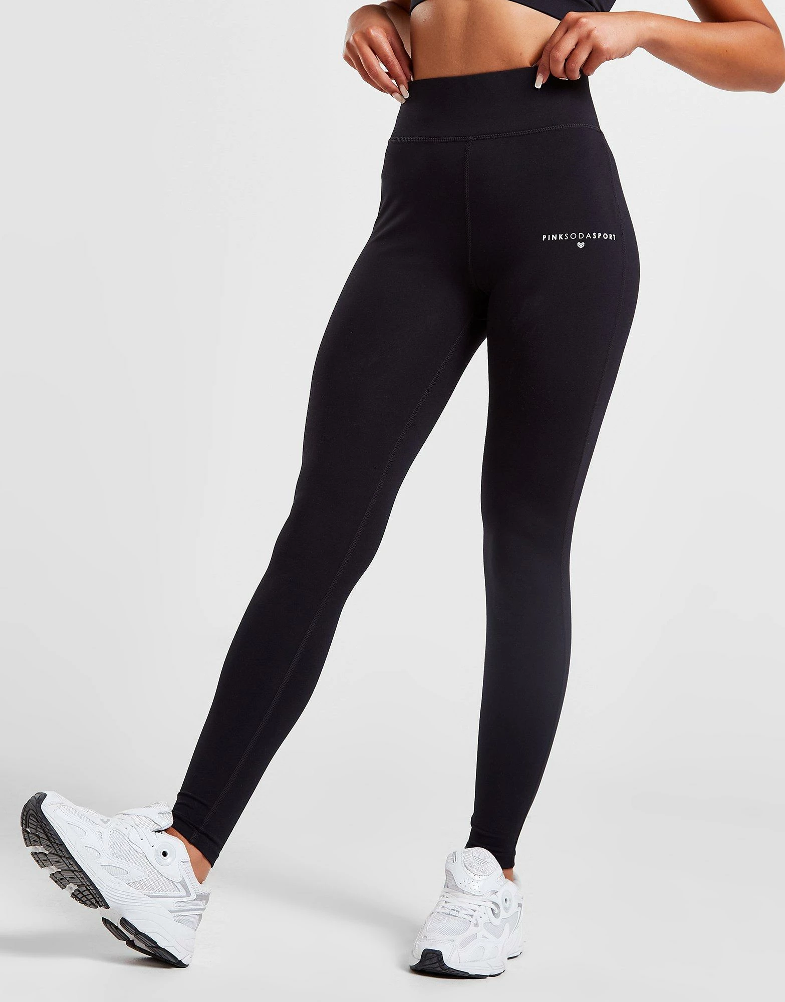 Add a classic look to your gym rotation with these women’s Essentials Tights from Pink Soda Sport. In a black colourway, these fitness staples come in a tight-fit thanks to a recycled poly blend, while a high-rise elasticated waistband keeps you secure and comfy. Built with sweat-wicking tech for a breathable feel, these durable tights are finished with signature Pink Soda Sport branding to the left thigh. Machine washable. | Our model is 5’7″ and wears a size 8.