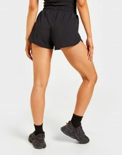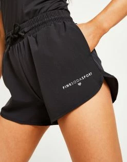 Be workout ready with these women’s Essential Woven Runner Shorts from Pink Soda Sport. In a Black colourway, shorts are made with a lightweight and smooth recycled poly fabric that has added stretch for max’ comfort. They feature an elasticated drawcord waistband for a snug, supportive fit that’s adjustable and side pockets for quick storage. Signed off with Pink Soda Sport branding to the thigh. Machine washable. | Our model is 5’6″ and wears a size 8.