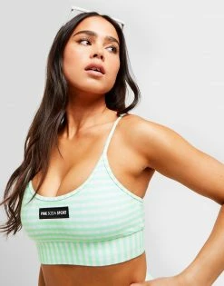Step up your style this summer with this women’s Gingham Bikini Top from Pink Soda Sport. In a Green colourway, this bikini top is made from a stretchy and smooth poly fabric for maximum comfort. It features adjustable straps for the perfect and has an elastic underbust for supportive wear. With an all-over gingham print, it’s signed off with Pink Soda Sport branding to the chest. Machine washable. | Our model is 5’6″ and wears a size 8.