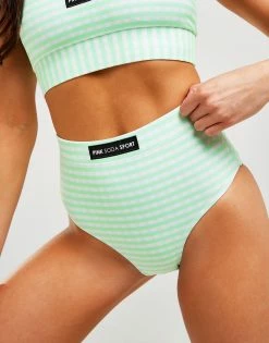 Standout by the poolside with these women’s Gingham High Waisted Bikini Bottoms from Pink Soda Sport. These bikini bottoms are made with a poly fabric that’s quick-drying and lightweight with a smooth feel to keep you feeling comfy. They feature a high-rise elastic waistband for a supportive feel and an all-over gingham print. Finished with Pink Soda Sport branding to the front. Machine washable. | Our model is 5’6″ and wears a size 8. Please note: Swimwear cannot be returned if the hygiene strip has been removed or is broken.