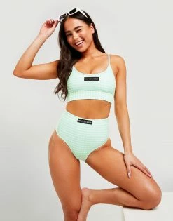 Standout by the poolside with these women’s Gingham High Waisted Bikini Bottoms from Pink Soda Sport. These bikini bottoms are made with a poly fabric that’s quick-drying and lightweight with a smooth feel to keep you feeling comfy. They feature a high-rise elastic waistband for a supportive feel and an all-over gingham print. Finished with Pink Soda Sport branding to the front. Machine washable. | Our model is 5’6″ and wears a size 8. Please note: Swimwear cannot be returned if the hygiene strip has been removed or is broken.