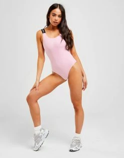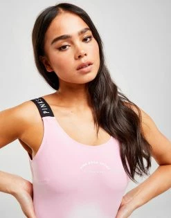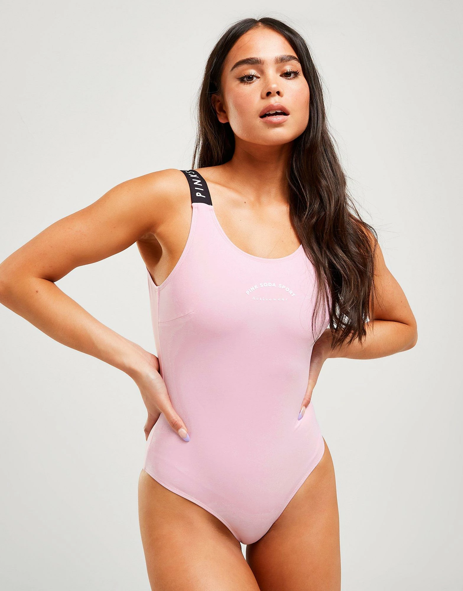 From the pool to the beach, rep this women’s Melo Tape Swimsuit from Pink Soda Sport. Landing in a Pink colourway, this tight-fit swimsuit is cut from ultra-smooth, durable poly with added stretch for supreme comfort. It features a scoop neckline and a low-cut back for a breathable feel, while contrasting fixed strap deliver a secure fit. Finished up with branded tape detailing at the shoulders, and a Pink Soda Sport logo at the chest to sign off. Machine washable. Please note: Swimwear cannot be returned if the hygiene strip has been removed or is broken. | Our model is 5’6″ and wears a size 8.