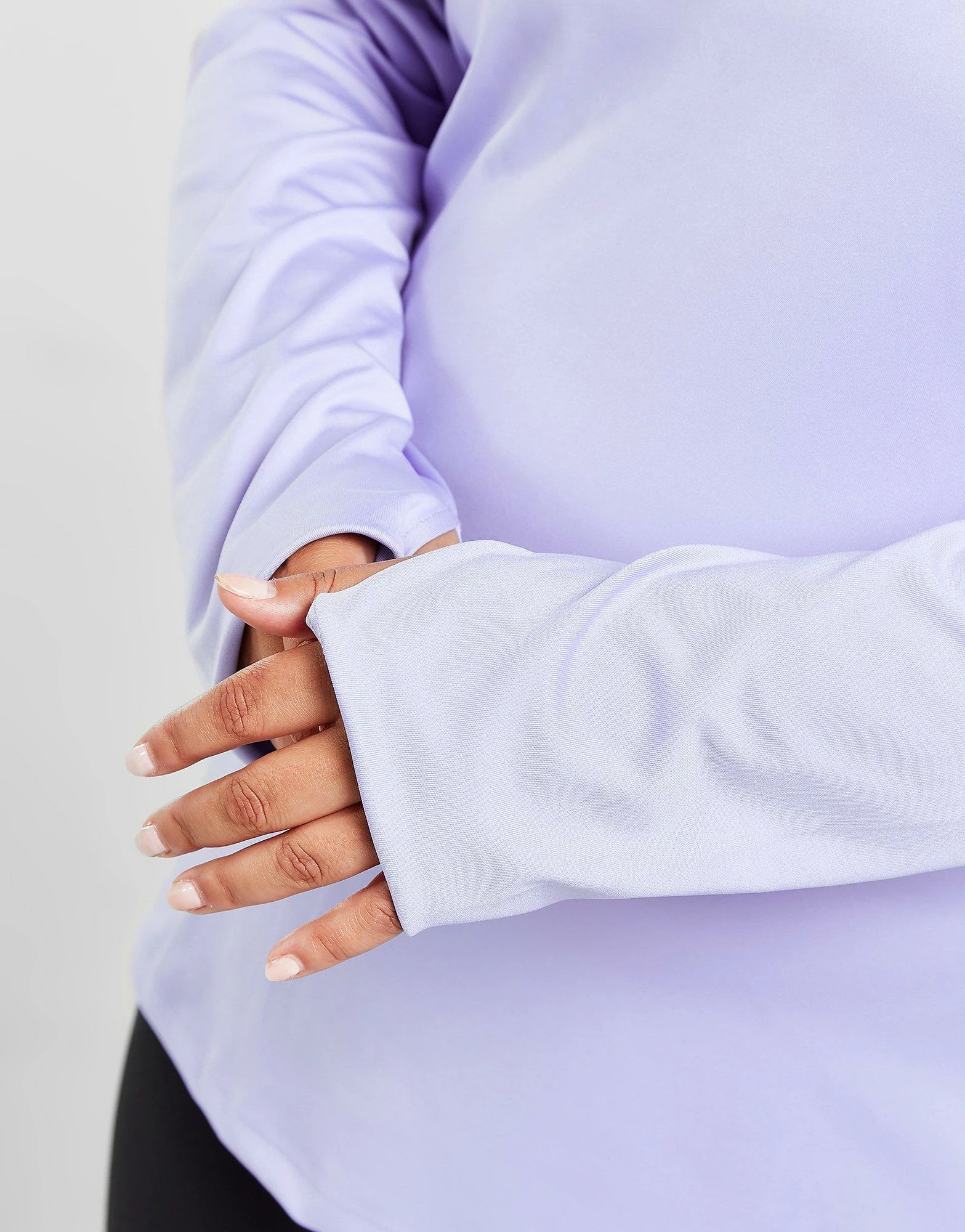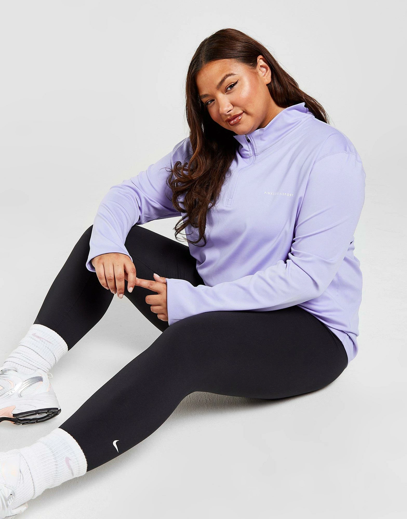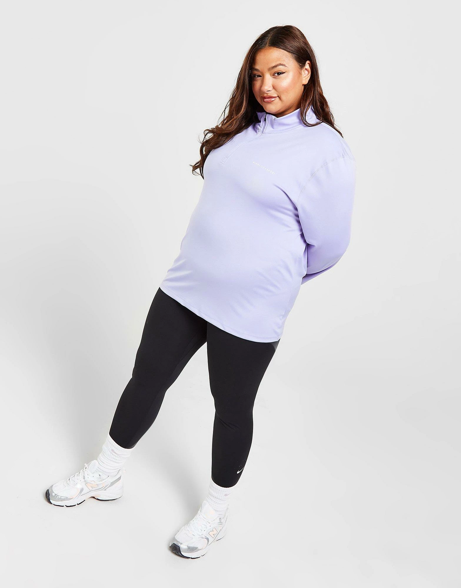 Cop a sporty style with this women’s Plus Size 1/4 Zip Top from Pink Soda Sport. In a Lilac colourway, this top is made from a recycled poly fabric that’s smooth and stretchy for complete comfort. It features a 1/4 zip fastening with a stand-up collar for custom coverage and thumbholes to hold the sleeves in place. Signed off with Pink Soda Sport branding to the chest. Machine washable. | Our model is 5’9″ and wears a size XL.