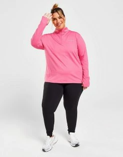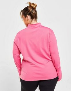 Top up your fitness essentials with this women’s Plus Size 1/4 Zip Top from Pink Soda Sport. Coming in a Shocking Pink colourway, this standard-fit top is made with smooth, stretch-woven recycled poly fabric for essential comfort. With a lightweight, breathable feel, it features a quarter zip closure and a raised collar to adjust your airflow, with long sleeves for full coverage. With thumb loops to secure the fit, it’s finished up with Pink Soda Sport branding at the chest. Machine washable. | Our model is 5’7″ and wears a size XL.