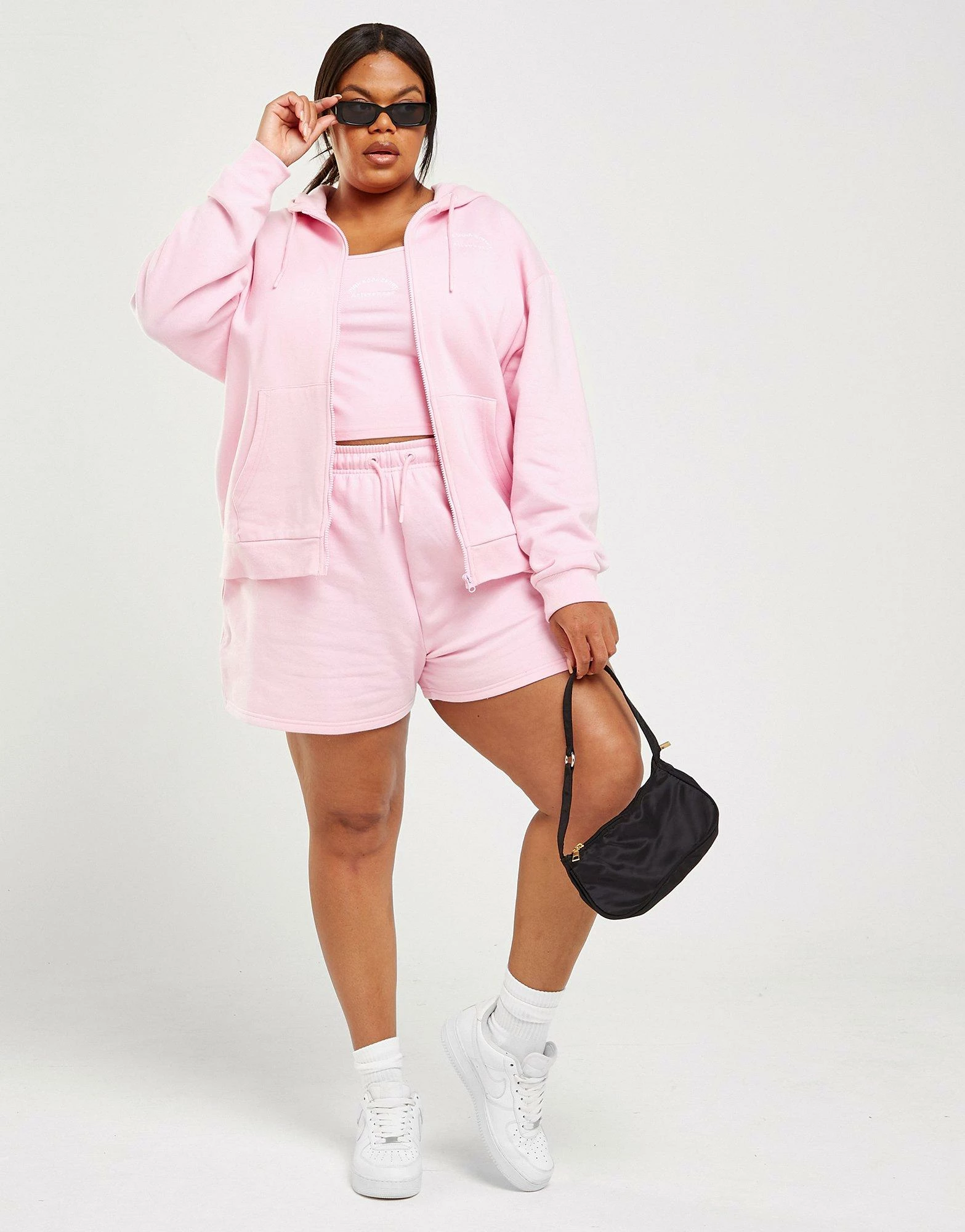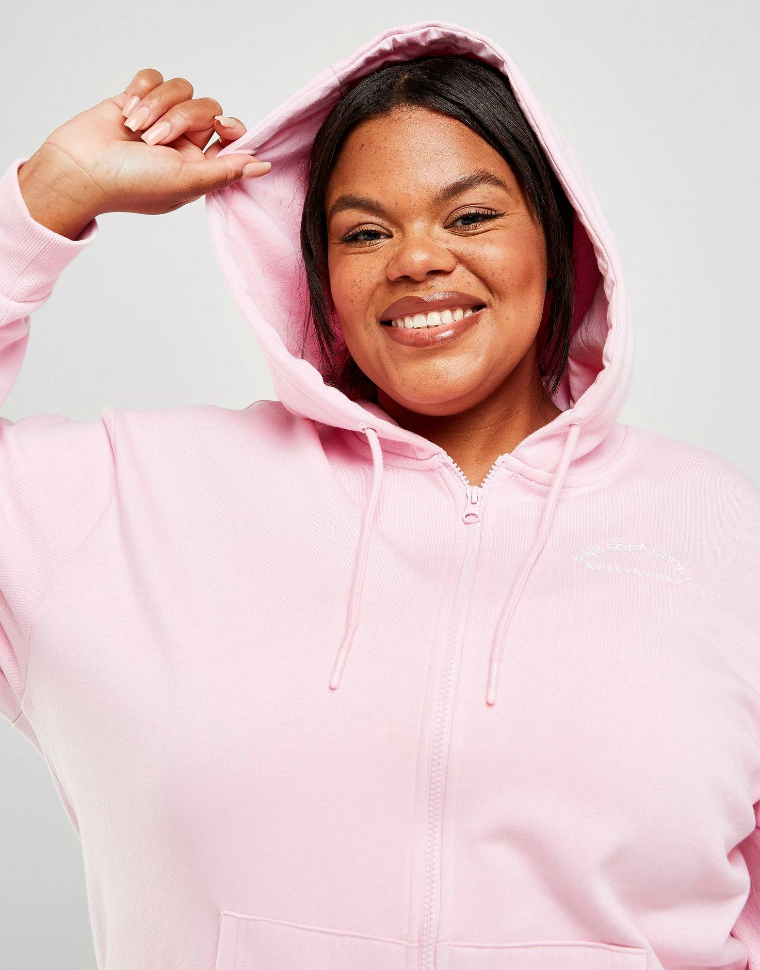 Refresh your layers with this women’s Plus Size Legacy Full Zip Hoodie from Pink Soda Sport. In a Pink colourway, this exclusive hoodie is made from light, fleecey fabric for snug comfort. It features a full-zip fastening and adjustable hood for custom coverage, with ribbed trims to secure the fit. It has side pockets for your essentials and is finished up with Pink Soda Sport branding to the chest. Machine washable. | Our model is 5’9″ and wears a size XL.