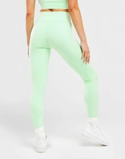 Get workout ready with these women’s Rib Panel Tights from Pink Soda Sport. Exclusive, these tight-fit leggings are made from stretchy recycled poly fabric with sweat-wicking tech for cool comfort. They come in a Green colourway and feature a high-rise elasticated waistband for a secure feel from squats to sprints. Finished with signature Pink Soda Sport branding to the leg. Machine washable. | Our model is 5’7″ and wears a size 8.
