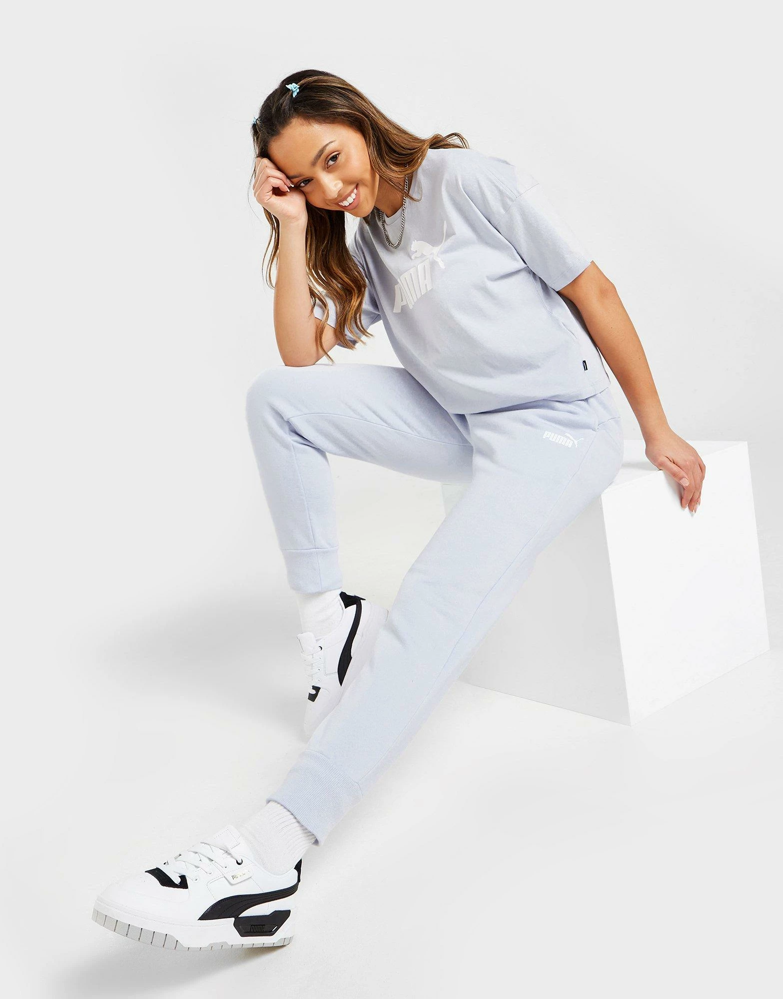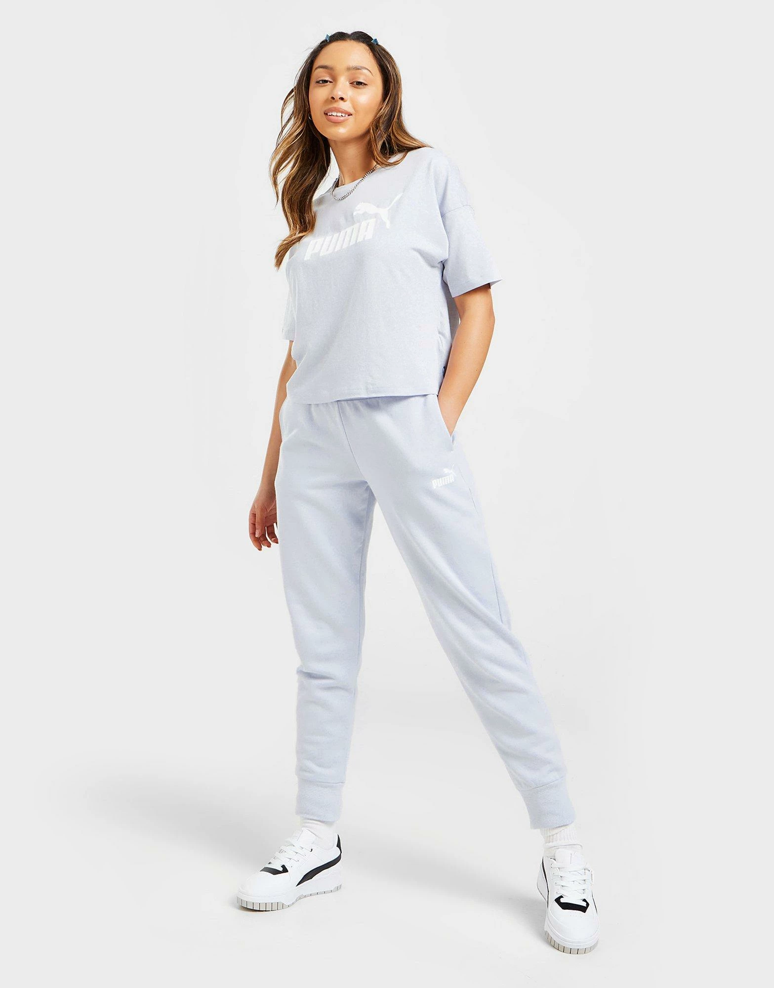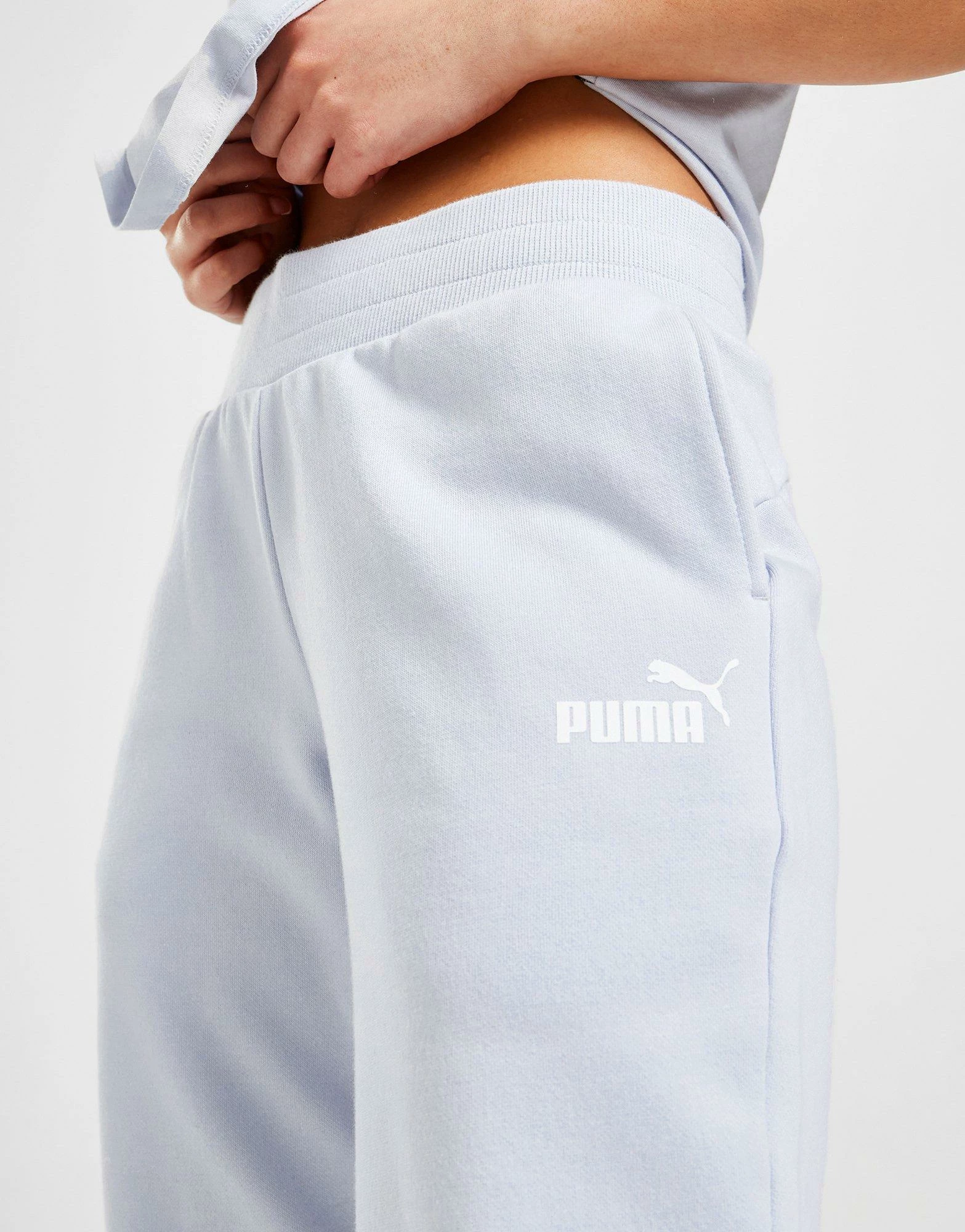 Give your off-duty ‘drobe a refresh with these women’s Core Joggers from PUMA. Coming in an Arctic Ice colourway, these regular-fit joggers are made with soft fleecey fabric for supreme comfort. They feature an elasticated waistband for a snug fit, while tapered legs and cuffed ankles offer a sleek, streamlined look. They have side pockets for easy storage, and are finished up with classic PUMA branding to the thigh. Machine washable. | Our model is 5’8″ and wears a size small.