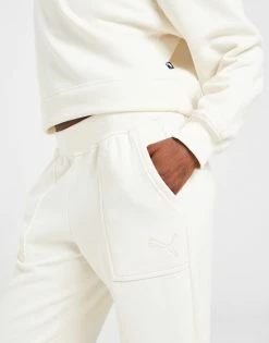 Kick back in next-level comfort with this women’s Crew Tracksuit from PUMA. In an Off White colourway, this laidback set is made from a soft cotton-poly blend, with stretchy, ribbed trims for a soft touch. The suit has a crew neck jumper with a cropped hem and dropped shoulders, while the joggers feature a drawcord waistband, cuffed ankles and side pockets for your essentials. This suit is finished up with tonal PUMA Cat branding to the chest and thigh. Machine washable. | Our model is 5’7.5″ and wears a size small.
