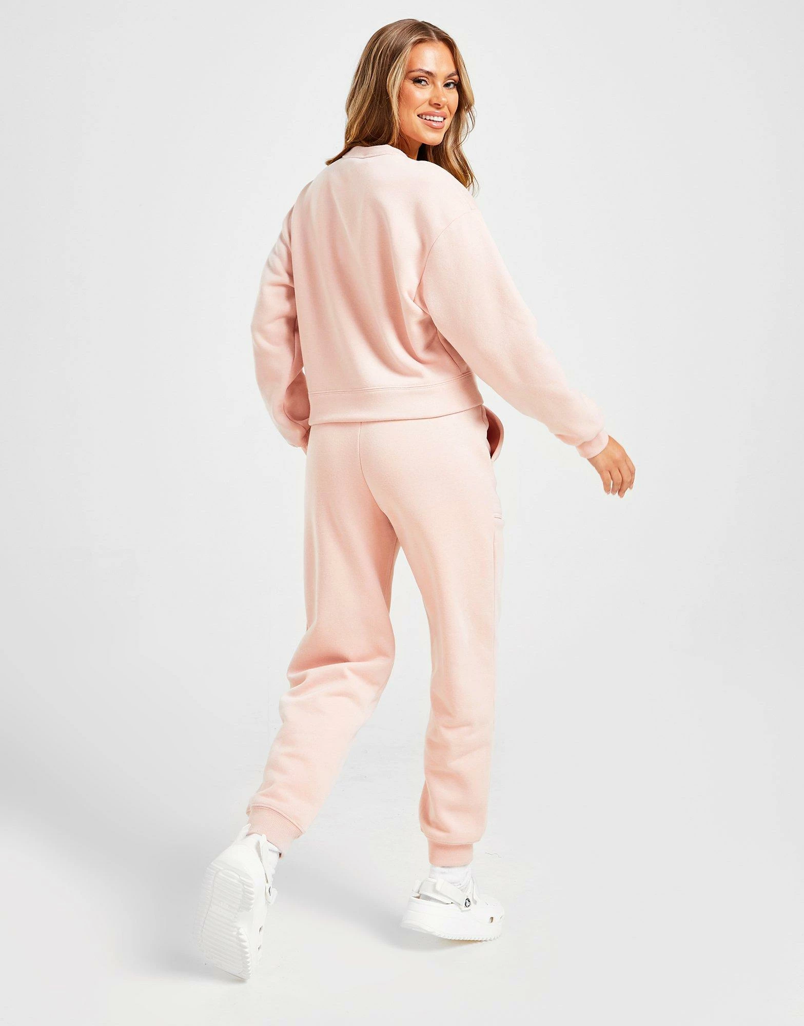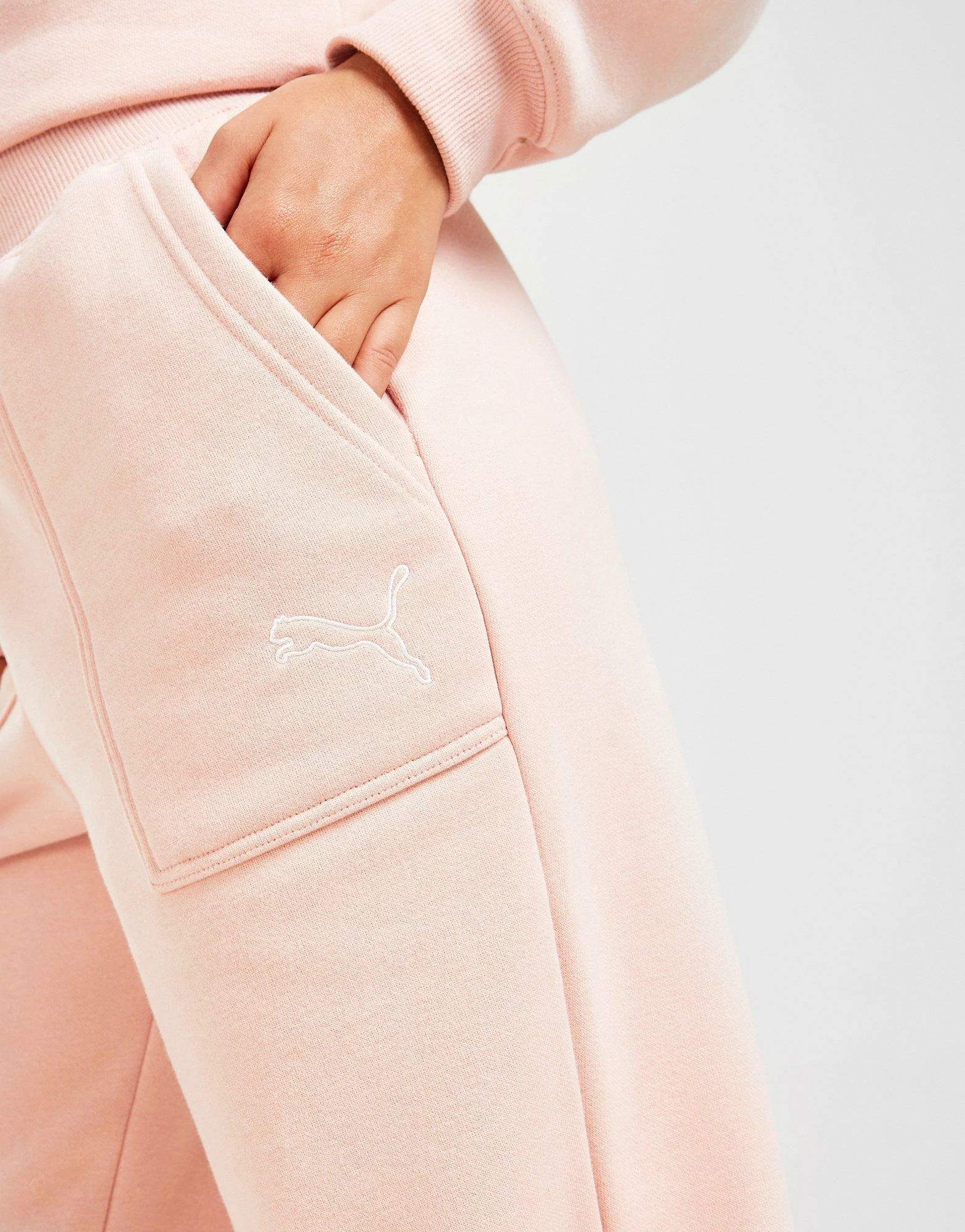 Elevate your laidback style with this women’s Crew Tracksuit from PUMA. In a Rose Quartz colourway, this off-duty suit has a cropped crew neck sweatshirt with dropped shoulders, while the matching joggers have a drawcord-adjustable waistband, spacious side pockets and cuffed ankles to show off your sneakers. Made from a plush cotton-poly blend for fleecy comfort, this set is finished off with embroidered PUMA Cat logos to the chest and leg. Machine washable. | Our model si 5’7″ and wears a size small.