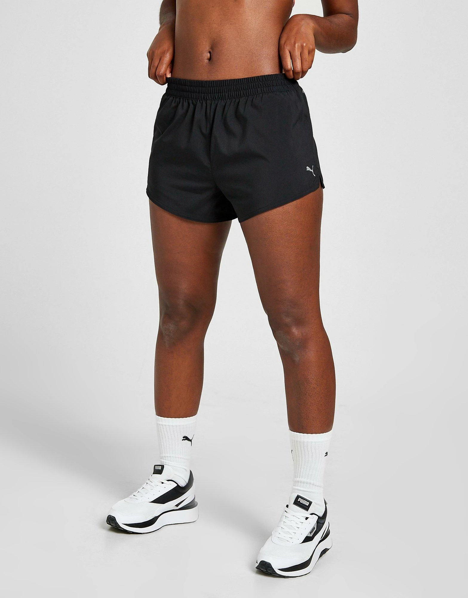 Keep fresh from first mile to last in these women’s Favourite 3″ Running Shorts from PUMA. In a slick black colourway, these regular-fit shorts are built with lightweight Drycell poly fabric for cool comfort. They feature an adjustable drawcord waistband for a secure fit, as well as an innner pocket for your phone. With reflective details for night-time visibilty, these shorts are finished up woth a signature Cat logo to the thigh. Machine washable.