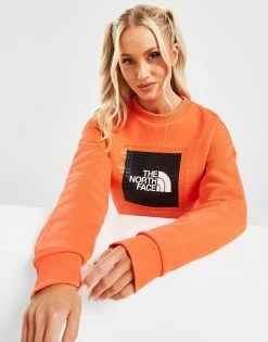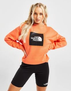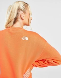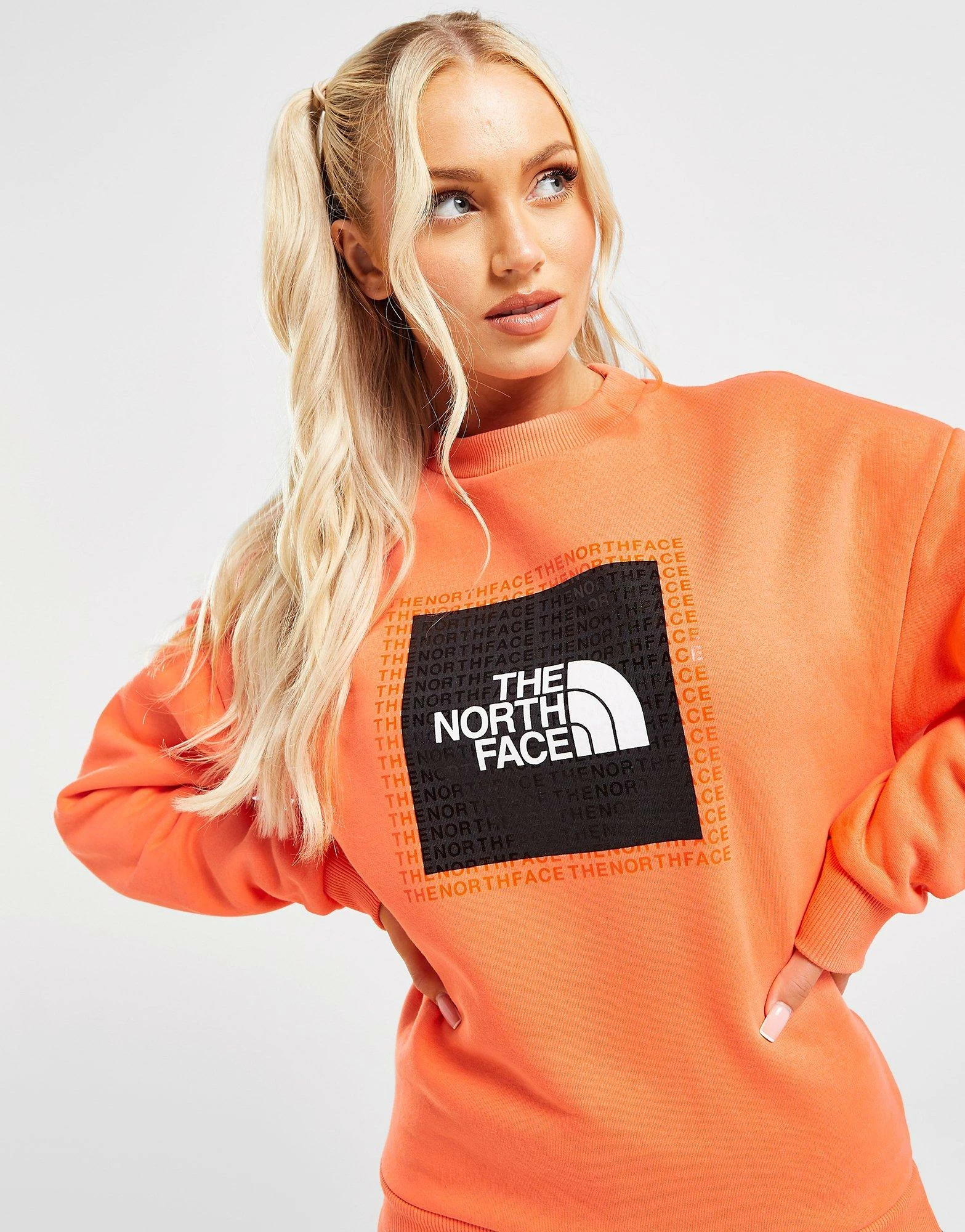 Level up your layers with this women’s Box Logo Crew Sweatshirt from The North Face. Exclusive, this loose-fit sweater is made with super-soft cotton fleece for essential comfort. In a bold Orange colourway, it features a classic crew neckline and long, drop-shoulder sleeves for a laidback vibe. It has tightly ribbed trims to secure the shape, and is finished up with an oversized The North Face box logo stamped to the chest, with subtle, tonal wordmark branding. Signed off with the siganture logo at the reverse shoulder. Machine washable. | Our model is 5’5″ and wears a size small.