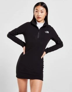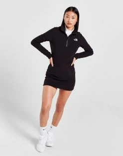 Level up your street-ready style with this women’s Glacier 1/4 Zip Dress from The North Face. Coming in a Black colourway, this slim-fit dress is made with super-soft recycled poly fleece for essential comfort. It features a quarter zip closure with a raised collar for a custom look, and long sleeves. With the hem hittin’ above the knees for a relaxed feel, it’s finished up with the iconic Half Dome logo at the chest and reverse shoulder. Machine washable. | Our model is 5’5.5″ and wears a size small.