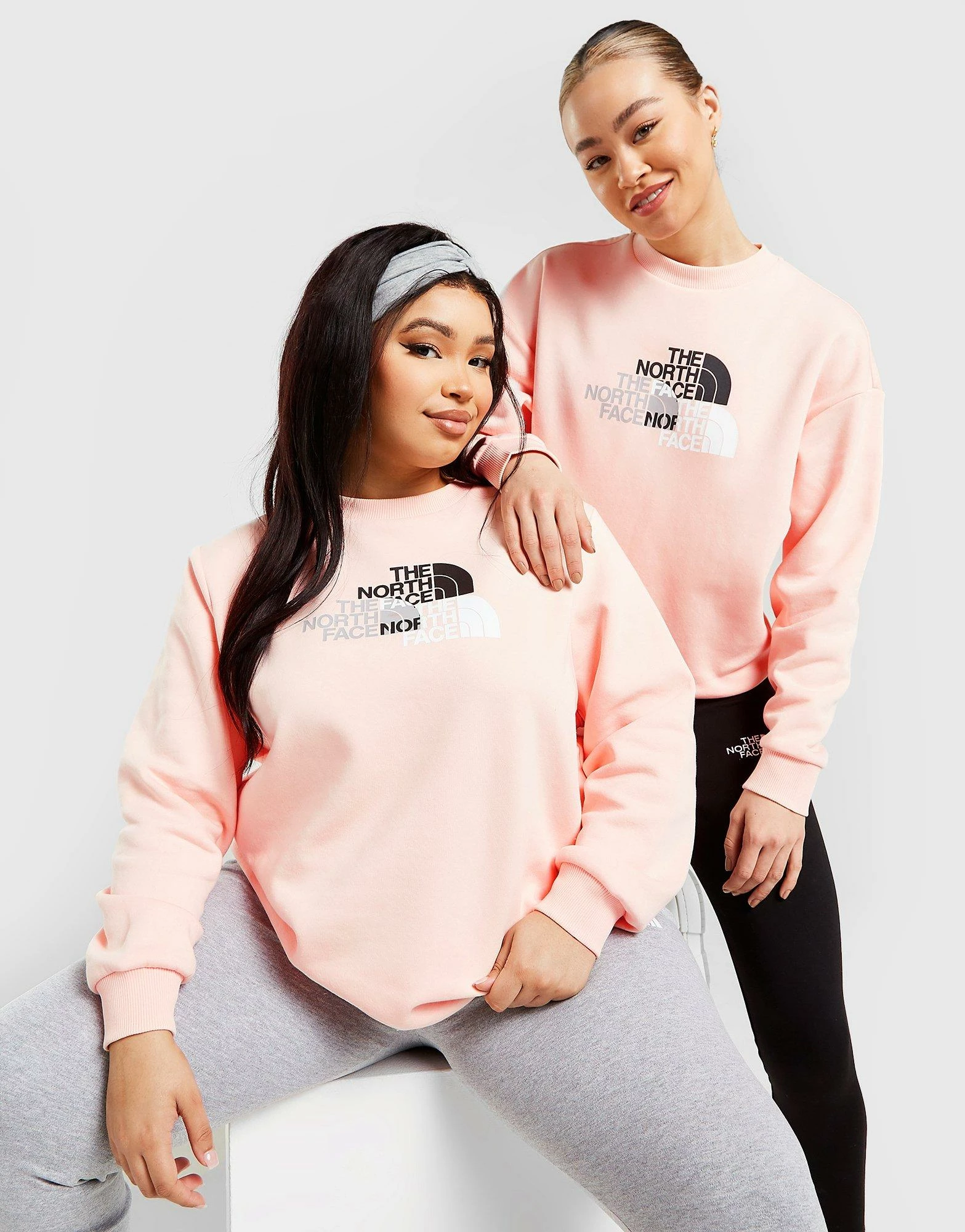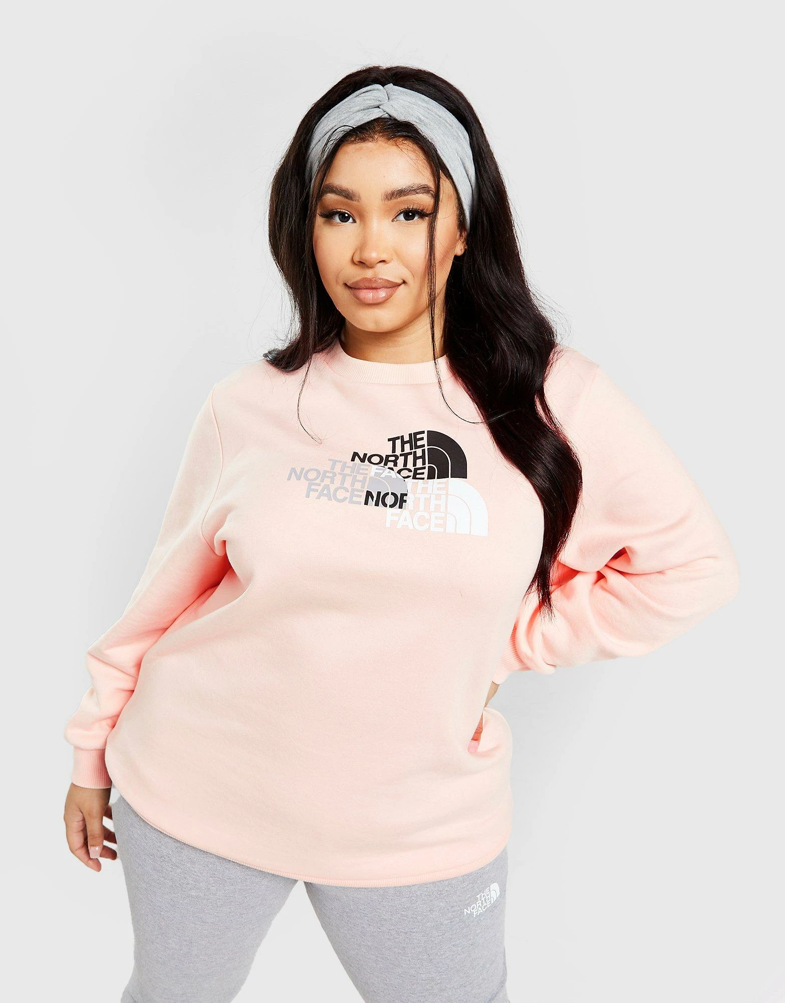 Level up your look with this women’s Plus Size Repeat Graphic Crew Sweatshirt from The North Face. This regular-fit sweat is made from an ultra-soft and cosy cotton fabric making it the perfect layer for colder days. It lands in a Pink colourway and features a crew neckline, long sleeves and ribbed trims to give you an elevated fit. Finished up with repeat TNF branding to the chest and the famous The North Face logo to the reverse shoulder. Machine washable. | Our model is 5’9″ and wears a size XL.