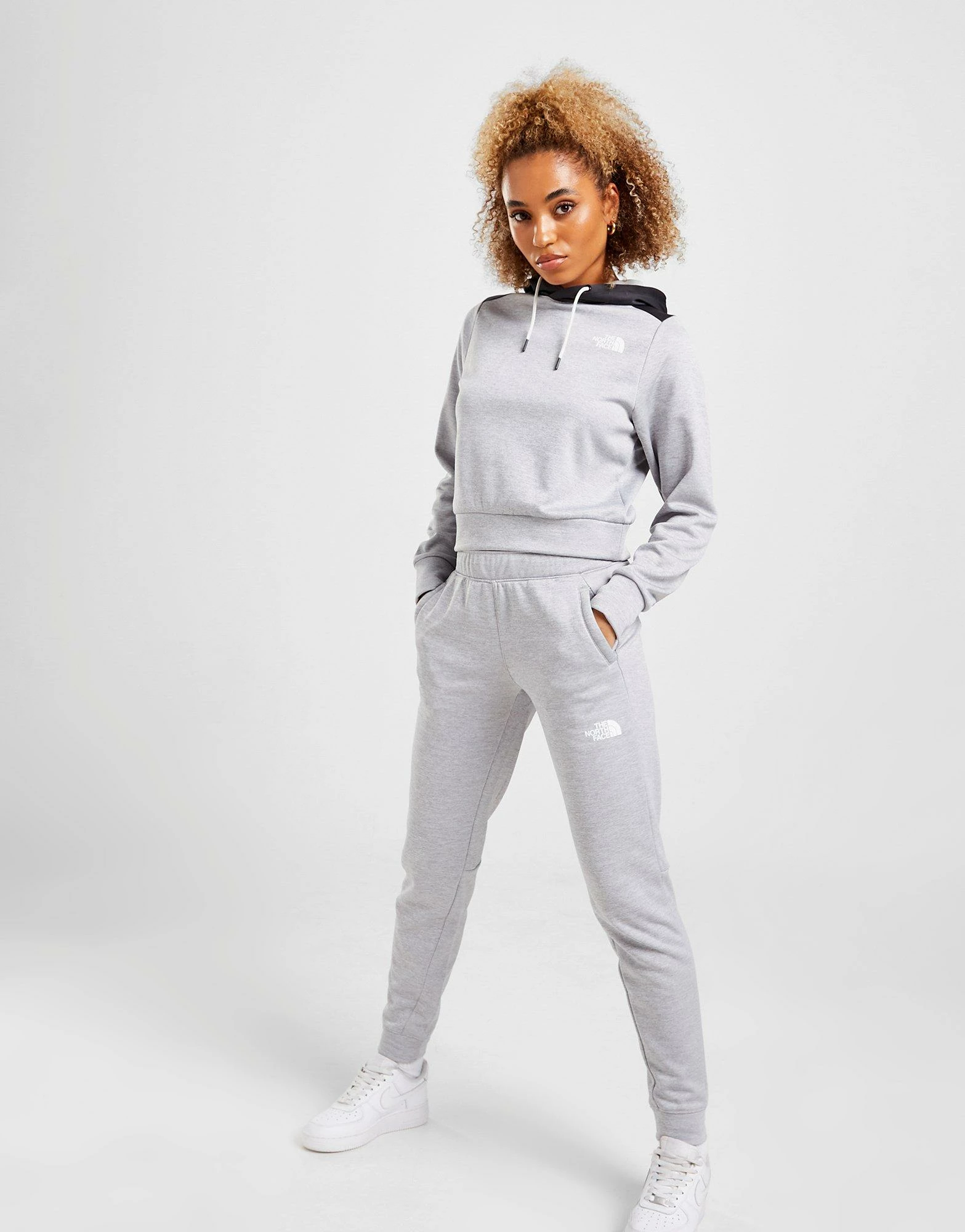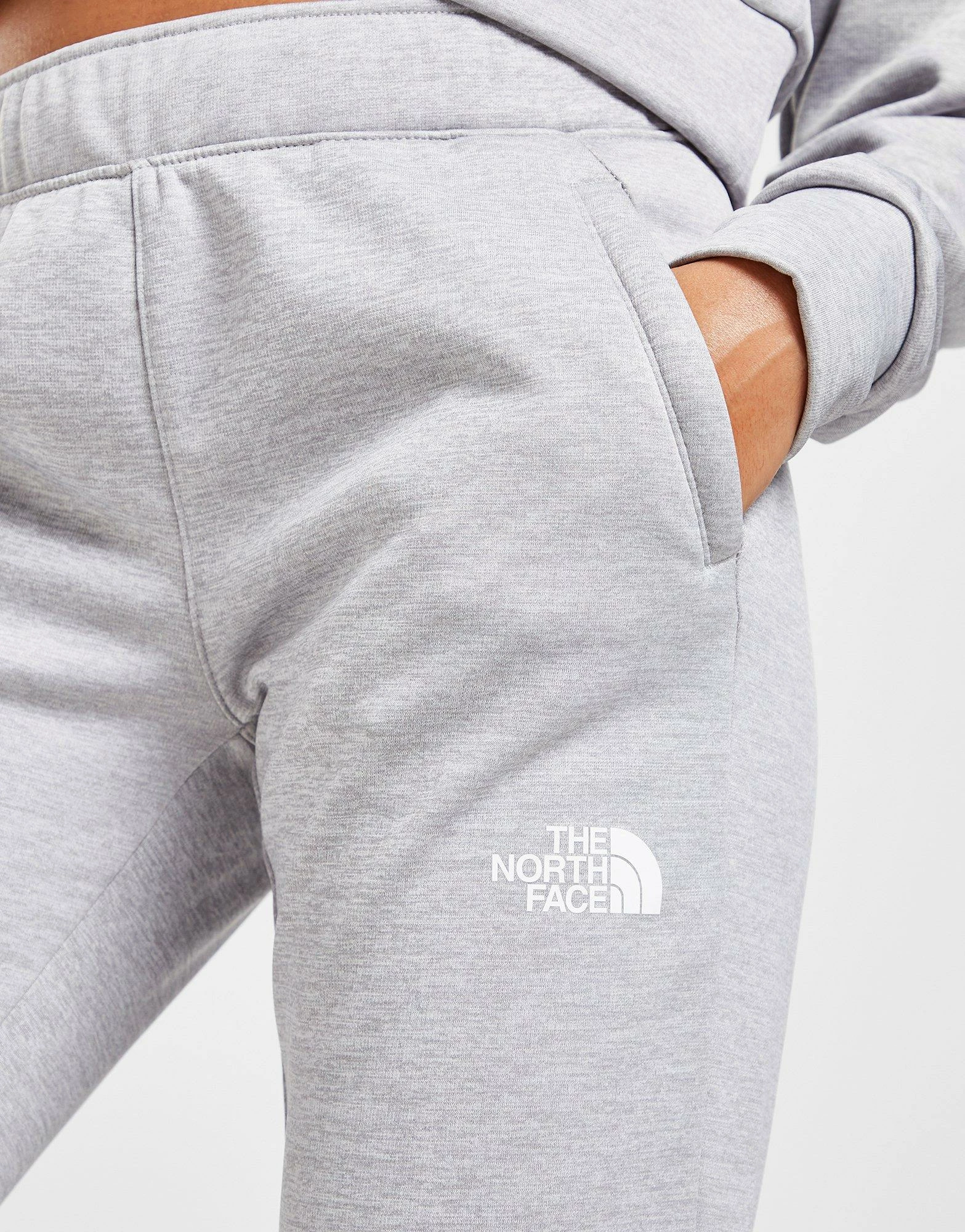 Level up your off-dutty ‘fits with these women’s Reaxion Track Pants from The North Face. In a Grey Marl colourway, these track pants are cut from smooth, durable poly fleece for supreme comfort. They have an elasticated waistband and cuffed ankles for a snug, secure fit, with side pockets to stash the essentials. Finished up with signature TNF branding at the thigh and calf. Machine washable. | Our model is 5’8″ and wears a size small.