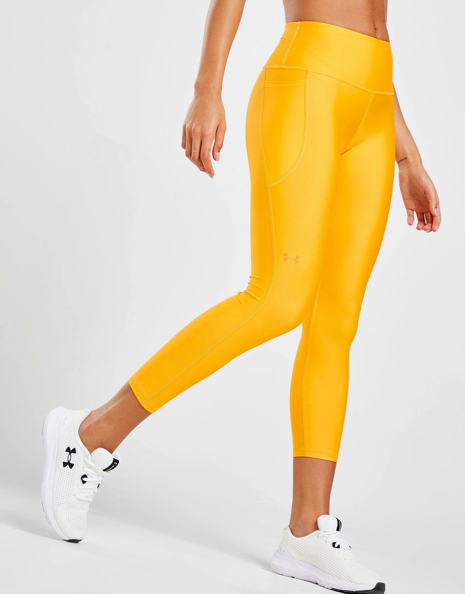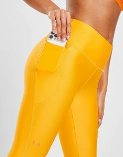 Cop an essential for your fitness rotation with these women’s HeatGear Ankle Tights from Under Armour. Coming in a Rise colourway, these body-hugging tights are made with UA’s HeatGear fabric that’s super-lightweight, sweat-wicking and has a 4-way stretch construction for next level comfort. They feature a high-rise UA No-Slip elastic waistband for a snug, supportive feel and flatlock seams for added comfort. With a side drop-in pocket ideal for your phone, it’s finished up with UA branding to the thigh. Machine washable. | Our model is 5’8″ and wears a size small.