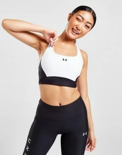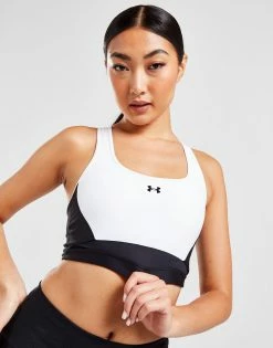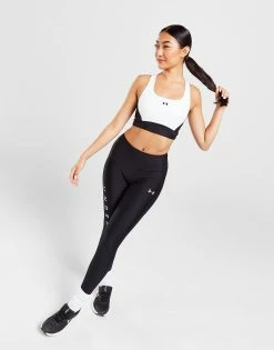 Hit the workout in this women’s Longline Crossback Sports Bra from Under Armour. In a black and white colourway, this sports bra is made with smooth, stretchy HeatGear fabric for essential comfort every time you train. It fits tight and has an elasticated underband for a supportive feel, and a longline cut for essential coverage. Featuring a low, round neckline, it has thick crossover straps to secure the shape, with a keyhole cutout for a breathable feel. Finished up with signature UA branding at the chest. Machine washable. | Our model is 5’8″ and wears a size small.