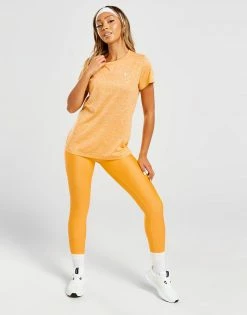 Smash your workout with this women’s Tech T-Shirt from Under Armour. In an Orange colourway, this standard fit tee is cut from light, breathable UA Tech poly fabric for cool comfort during your workout. It features short sleeves with a crew neckline and is equipped with sweat-wicking tech to help you stay dry and comfy when pushing for your goals. Finished up with signature Under Armour branding to the chest and nape. Machine washable | Our model is 5’8″ and wears a size small.
