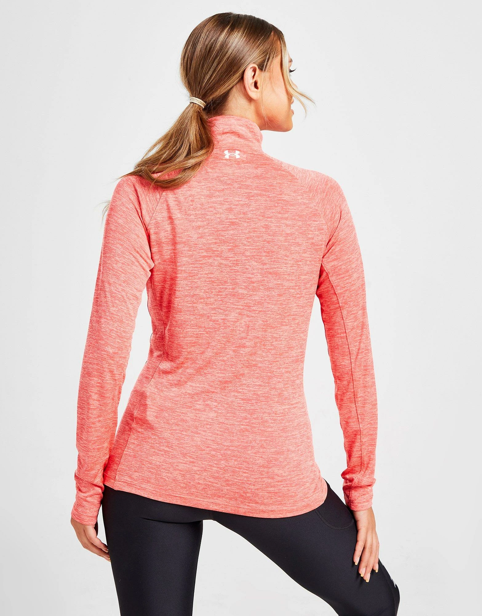 Focus on your goals with this women’s Tech Wordmark 1/4 Zip Top from Under Armour. In a Red colourway, this exclusive top is cut from light, breathable polyester with sweat-wicking tech to keep you dry and fresh. It features a 1/4-zip fastening and stand up collar for custom coverage, with long sleeves and is finished up with Under Armour branding to the chest. Machine washable | Our model is 5’7″ and wears a size small.