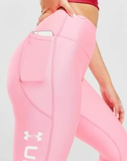 Smash your session with these women’s UA Armour Tights from Under Armour. These compression-fit tights come in a Pink Colourway and are made using UA’s HeatGear fabric that has 4-way stretch construction and wicks away sweat for complete comfort that keeps you cool. They feature a high-rise UA No-Slip elastic waistband to keep you feeling supported and flatlock seams for added comfort. With a side drop-in pocket that’s ideal for storing your phone, it’s signed off with an Under Armour wordmark to the thigh. Machine washable. | Our model is 5’6.5″ and wears a size small.