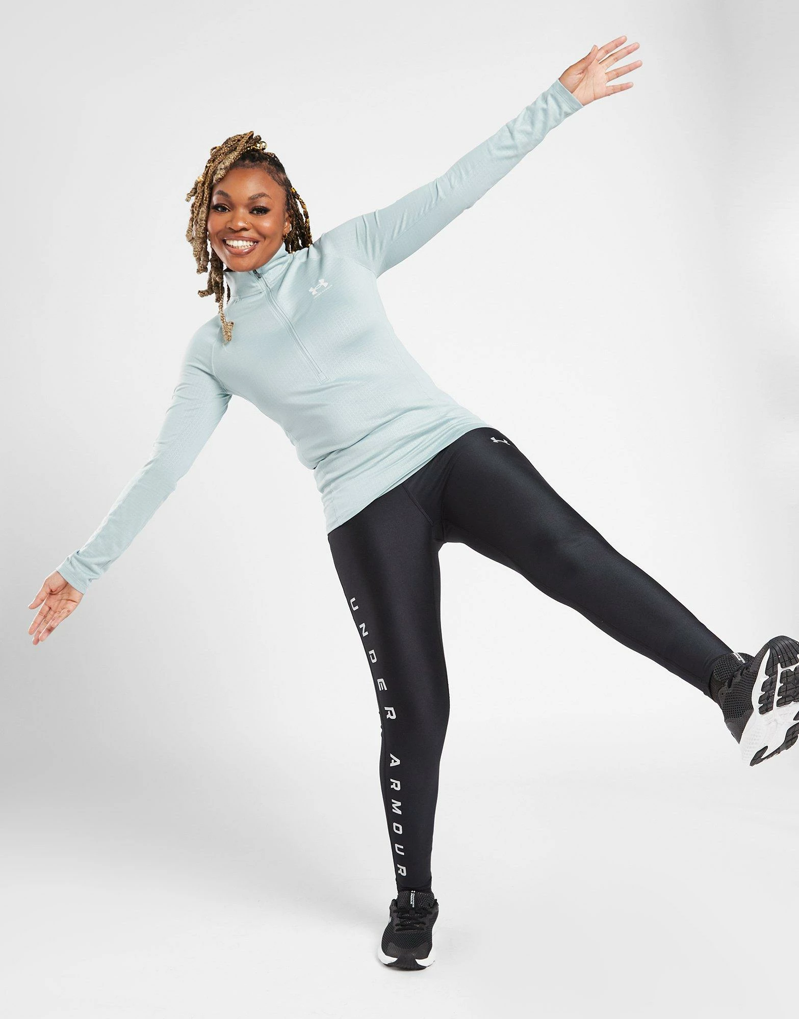 Push it to the max in these women’s HeatGear Reflective Tights from Under Armour, exclusive. In a Black colourway, these body-hugging compression tights are made from smooth, stretchy poly fabric and are equipped with HeatGear to keep you cool when the sesh heats up. The material wicks away sweat to keep you dry and fresh, while the elasticated, high-rise waistband offers a relaxed fit as you train. They’re stretch and squat proof and are finished up with reflective Under Armour branding to the thigh to keep you visible. Machine washable | Our model is 5’6″ and wears a size small.