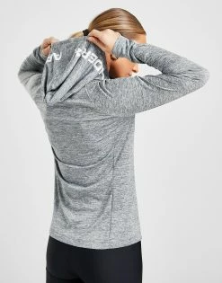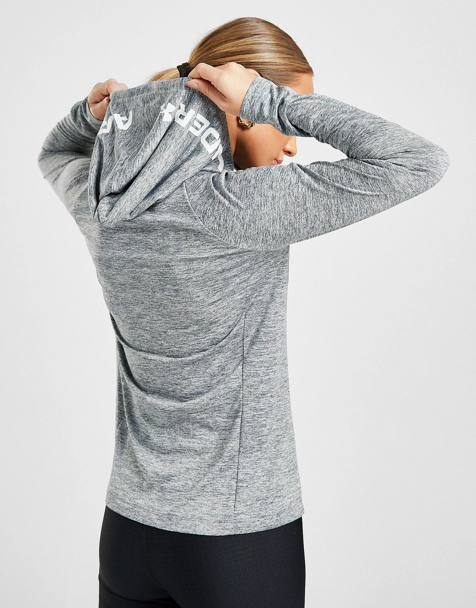 From warm ups to workouts, this women’s Wordmark Tech Overhead Hoodie from Under Armour has comfort covered. Exclusive, this standard-fit hoodie is made from breathable fabric with sweat-wicking tech to keep you cool. It comes in a Grey Heather colourway and has an overhead design with a fixed hood for extra coverage. With raglan sleeves for unrestricted movement, this hoodie is finished with signature Under Armour branding to the chest. Machine washable. | Our model is 5’8″ and wears a size small.