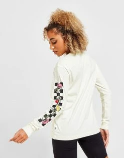 Freshen your ‘fits with this women’s Floral Long Sleeve T-Shirt from Vans. Coming in a Cream colourway, this loose fit tee is made using a heavyweight cotton that has a soft feel for max’ comfort. It features a crew neckline and long sleeves with a checkerboard and floral print for an amped up look. Finished with Vans branding to the chest. Machine washable. | Our model is 5’8″ and wears a size 8.