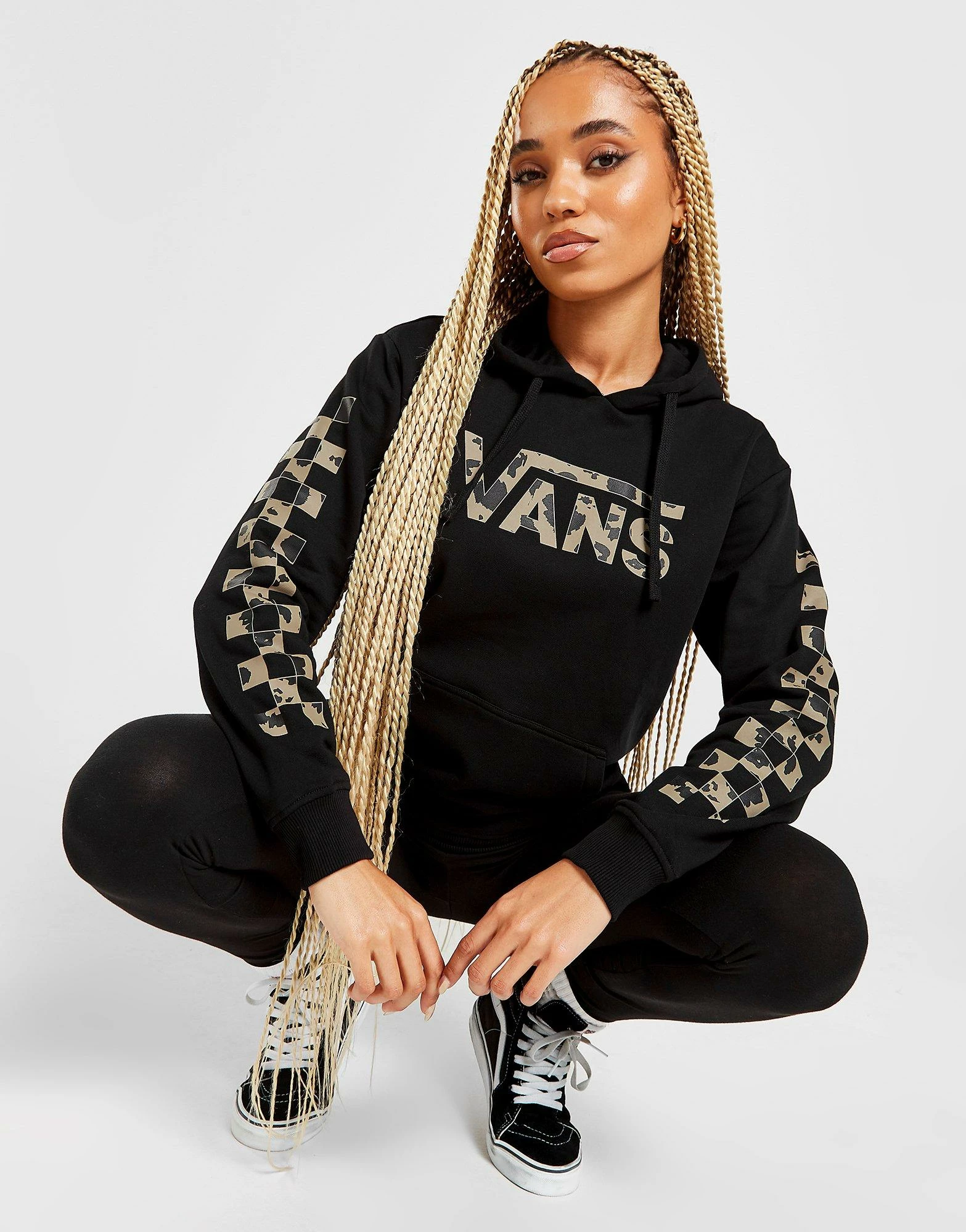 Bring a skater vibe to your rotation with this women’s Leopard Print Infil Hoodie from Vans. In a Black colourway, this standard fit hoodie is cut from soft cotton fabric for everyday comfort. It features an adjustable hood for custom coverage, with ribbed trims to secure the fit and a kangaroo pouch for quick and easy storage. Finished up with leopard print Vans branding to the chest and sleeves. Machine washable | Our model is 5’8″ and wears a size small.